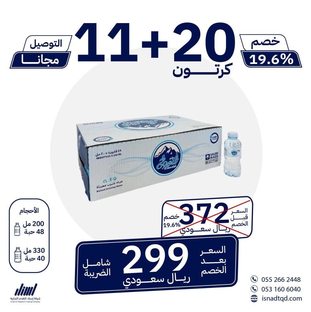 مياه شموخ 20 كرتون + 11 (توصيل مجاني)