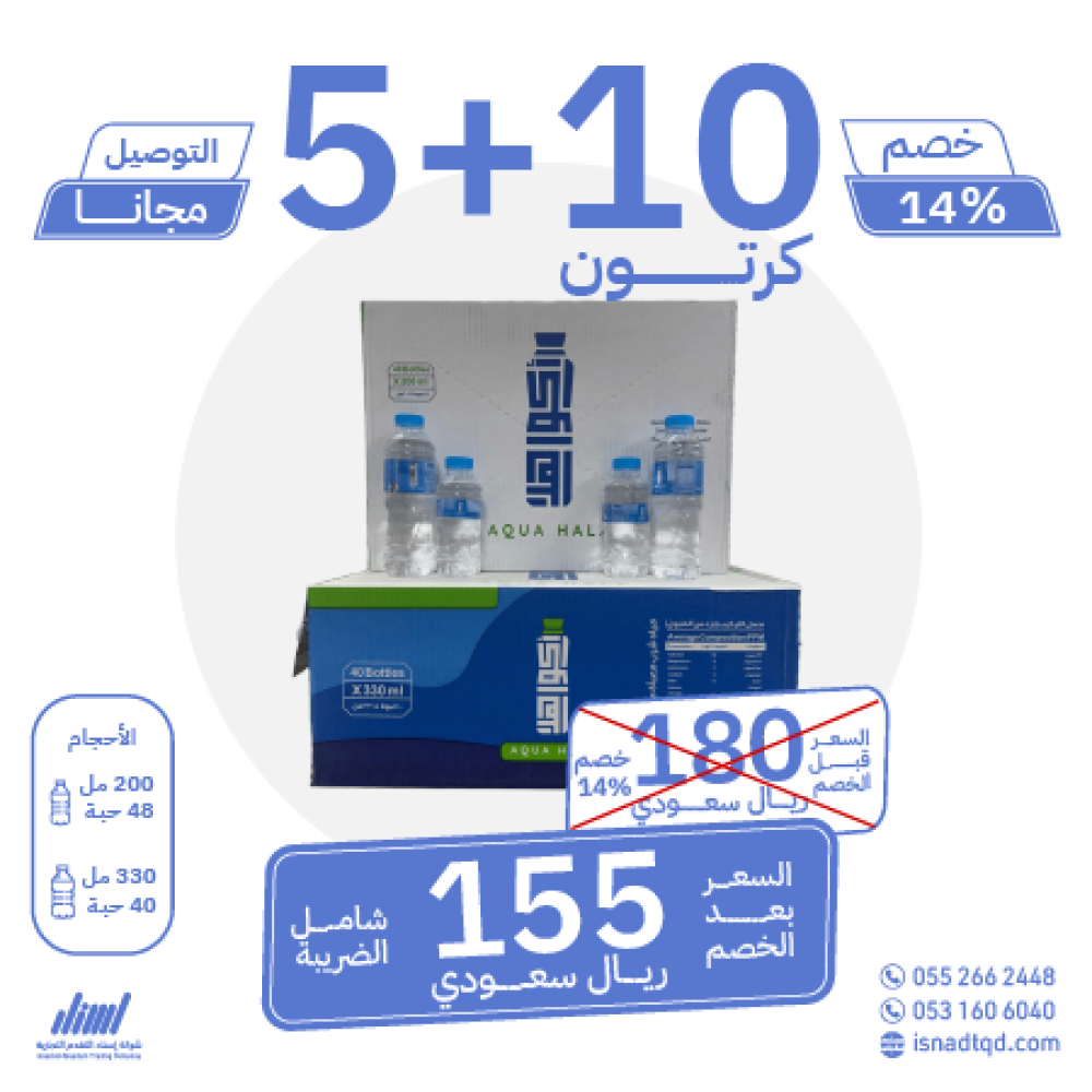 مياه اكوا هلا 10 كرتون + 5 (توصيل مجاني)