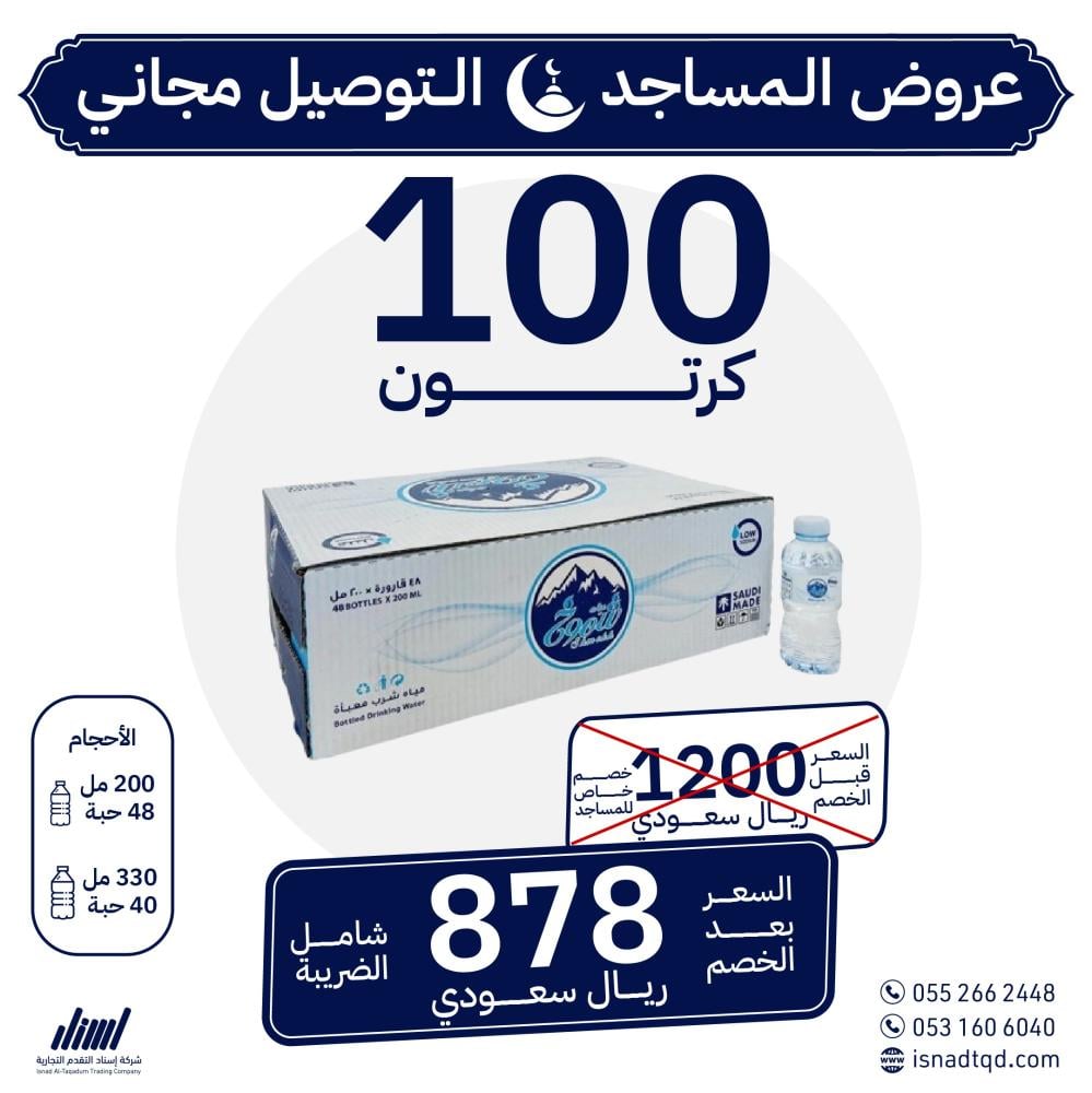مياه شموخ 100 كرتون (توصيل مجاني)